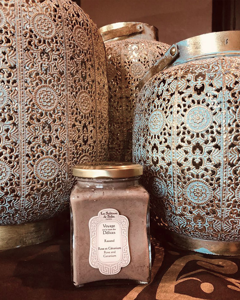 Рассул – мылящаяся и пенящаяся глина, богатая кремнием, оксидом железа и магнием, которая добывается в районе Эссуэйра (Марокко). Она обладает абсорбирующими и обезжиривающими свойствами, избавляет кожу от загрязнений, при этом питая и увлажняя её.